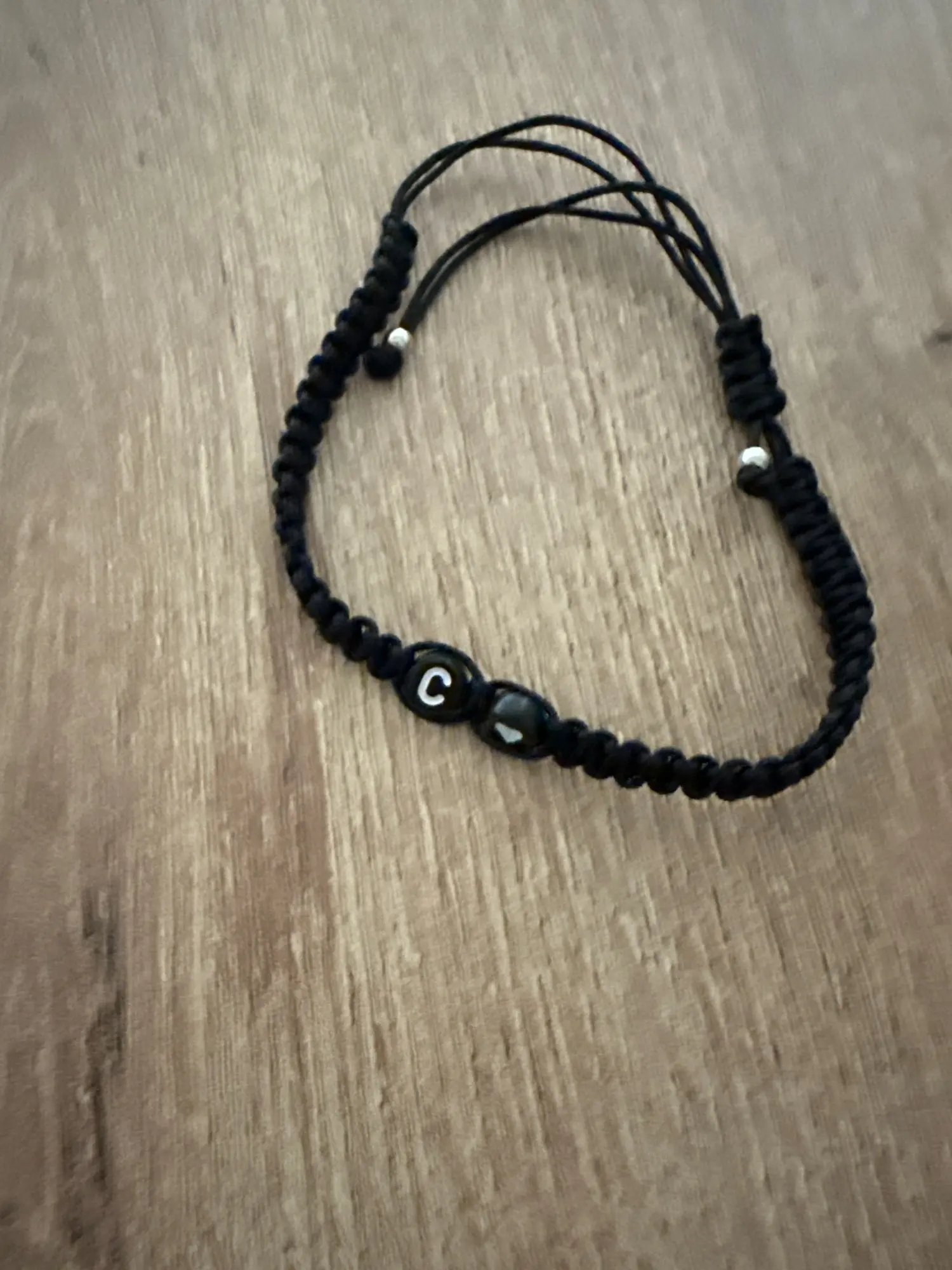 Diseñada con un cordón trenzado ajustable, se adapta cómodamente a cualquier muñeca. Incorpora un corazón central acompañado de una inicial a elegir, convirtiéndola en una joya discreta, elegante y totalmente personalizada.